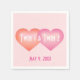 Esta servilleta de corazones gemelos -perfecta para una ducha de bebé con chicas gemelos, bautismo o cumpleaños- tiene un corazón de salmón y un corazón rosado, cada uno con un centro lavado de blanco, cubierto por una plantilla de texto para los nombres de los bebés. La imagen de doble corazón también es apropiada para fiestas de compromiso, bodas, duchas de novias y celebraciones del aniversario.