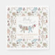 Estas servilletas de papel de Baby Shower neutro en cuanto a género presentan adorables ilustraciones hechos a mano de Navidades con trajes de pijama y animales de felpa en un tendedero y nombre y evento de personalizable. Elegante fondo blanco.