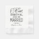 Las servilletas bodas presentan un elegante diseño de tipografía mixta "Comer, beber y estar casados" en negro.