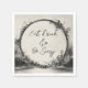 Este gótico diseño de servilletas de Halloween presenta una corona de ramas torcidas, flores y sombras sutiles, rodeando la frase "Comer, beber y tener miedo". El estilo monocromo inspirado en el grabado añade un toque elegante pero sobrio.