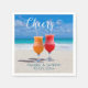 Dos bebidas en la playa, recién casados envían servilletas fiestas con texto personalizado en dos lugares. Di "buen viaje", "felicitaciones" o algo similar en la parte superior con nombres en la parte inferior. Dos cócteles helados se encuentran en la arena, un diseño perfecto para la pareja que planea una luna de miel tropical.
