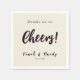 Personalizable de fondo blanco y servilletas bodas de tipografía negra. Tipografía de "Bebida de personalizable en nosotros, Cheers!", seguida de nombres de recién casados y fecha de boda. ¡Felicitaciones a tu boda!