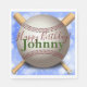 La servilleta de papel personalizado muestra un béisbol y un murciélago cruzado, con "Feliz Cumpleaños" en un guión de Maroon y el nombre de tu persona en un verde. De HAMbyWhiteGlove, los accesorios de juego se venden por separado.