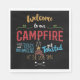 Fogata diseña gorra dice bienvenido a nuestra fogata con amigos, malvaviscos se tosan al mismo tiempo. Este diseño parece realmente efectivo en estas servilletas de papel