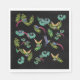 Pájaros coloridos, pequeños dibujos de arte digital de colibríes, volando libre entre hojas verdes. Hermoso patrón para los amantes del arte y de las aves. Color de fondo personalizado.