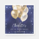 A navy blue background with elegant faux sparkles and golden balloons. The blue color is uneven. Personalize and add a name and age. White letters.