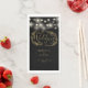 Diseño de boda negro y dorado con luces de cuerda de bonito y flores, estas elegantes toallas de papel se pueden personalizar con su información en letras de oro de moda. Diseñado por Thisisnotme©