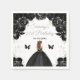 Esta elegante y glamorosa servilleta de cumpleaños incluye una hermosa princesa con el pelo castaño en un vestido de bolas negras. El texto combina el guión manuscrito y las fuentes sans serif modernas para un aspecto elegante y sofisticado. Los arreglos florales, mariposa y confitis de plata crean la combinación perfecta entre rústico y moda. Gráficos de www.etsy.com/uk/shop/SunflowerDayLove