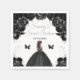 Esta elegante y glamorosa servilleta dulce de dieciséis años cuenta con una hermosa princesa con el pelo de morena en un vestido de bolas negras. El texto combina el guión manuscrito y las fuentes sans serif modernas para un aspecto elegante y sofisticado. Los arreglos florales, mariposa y confitis de plata crean la combinación perfecta entre rústico y moda. Gráficos de www.etsy.com/uk/shop/SunflowerDayLove