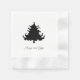 Christmas party paper napkins with black tree design. Minimalist image of a tree with swirling branches and one line of text. Sample wording is, "Merry and Tipsy", and is easy to change.