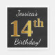 Este sencillo diseño de servilletas de papel muestra un mensaje como "¡El cuarto cumpleaños de Jessica!", con el "decimocuarto" en apariencia de oro falso, sobre un fondo de color negro. El nombre se puede personalizar. Podría ser usado en una fiesta de cumpleaños para alguien que está celebrando su decimocuarto cumpleaños. [~Z0000079]