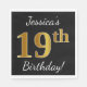 Este sencillo diseño de servilletas de papel muestra un mensaje como "¡El cumpleaños 19 de Jessica!", con el "19" en falso aspecto dorado, sobre un fondo de color negro. El nombre se puede personalizar. Podría ser usado en una fiesta de cumpleaños para alguien que está celebrando su decimonoveno cumpleaños. [~Z0000079]