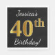 Servilleta De Papel Black, Faux Gold 40th Birthday + Custom Name