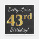 Servilleta De Papel Black, Faux Gold 43rd Birthday + Custom Name