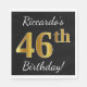 Servilleta De Papel Black, Faux Gold 46th Birthday + Custom Name