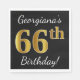 Servilleta De Papel Black, Faux Gold 66th Birthday + Custom Name