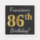 Este sencillo diseño de servilleta de papel muestra un mensaje como "¡Cumpleaños 86 de Francisco!", con el "86" en un falso aspecto dorado, en un fondo de color negro. El nombre se puede personalizar. Podría ser usado en una fiesta de cumpleaños para alguien que está celebrando su cumpleaños número ochenta y seis. [~Z0000079]
