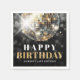 Celebrate in style with this chic birthday cocktail napkin featuring a bold black background and festive disco ball details. "Happy Birthday" is displayed in a mix of white and gold serif fonts for an elegant and celebratory touch. Below the greeting, there’s space to add the person’s name and age, which can be customized to any age for your celebration.