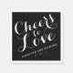 Cuadros de papel de Boda blanco y negro personalizados - Cóctel - Saludos al amor. Diseño de Elke Clarke©. Disponible en www.zazzle.com/monogramgallery. Clásicas toallas personalizadas con nombres de novios y novios y fecha de boda con letra de escritura blanca sobre un fondo negro de color sólido. El hermoso diseño es perfecto para recepciones de bodas, fiestas de compromiso, fiestas de aniversario de bodas y otras ocasiones especiales. Utilice el menú de edición para cambiar colores o visite nuestra tienda para más diseños y opciones de color.