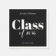 Celebrate a milestone moment with these elegant black and white graduation party napkins, fully personalized with the graduate’s name, class year, and a custom message. Perfect for high school or college graduation parties, these customizable napkins add a meaningful and polished touch to your table décor. The classic monochrome design pairs effortlessly with any school colors or party theme, making them a stylish and practical detail that honors your graduate in a truly personal way.