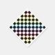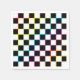 Arte digital abstracto de cuadrados blancos y de color arcoiris en una formación de cuadros a cuadros.