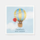 Temática de viajes capilares de papel de baño de bebé con ilustracion de un oso de peluche marrón montado en un globo de aire caliente azul y amarillo con un globo rojo. Hay falsas banderas purpurinas de plata alrededor del globo de aire caliente. Personalizar este producto agregando el nombre de la futura mamita. Diseñado para una ducha de niños.