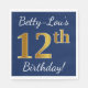 Servilleta De Papel Blue, Faux Gold 12th Birthday + Custom Name