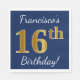 Este sencillo diseño de servilleta de papel muestra un mensaje como "¡Cumpleaños 16 de Francisco!", con el "16" en un falso aspecto dorado, en un fondo de color azul. El nombre se puede personalizar. Podría ser usado en una fiesta de cumpleaños para alguien que está celebrando su decimosexto cumpleaños. [~Z0000083]