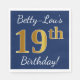 Servilleta De Papel Blue, Faux Gold 19th Birthday + Custom Name