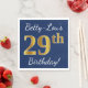 Este sencillo diseño de servilletas de papel presenta un mensaje como "¡Cumpleaños 29 de Betty-Lou!", con el "29" en un falso aspecto dorado, en un fondo de color azul. El nombre se puede personalizar. Podría ser usado en una fiesta de cumpleaños para alguien que está celebrando su 29º cumpleaños. [~Z0000083]