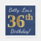 Servilleta De Papel Blue, Faux Gold 36th Birthday + Custom Name