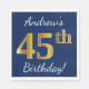 Servilleta De Papel Blue, Faux Gold 45th Birthday + Custom Name