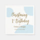 Estas elegantes servilletas cuentan con un hermoso punto de polka azul y un diseño de texto en tonos dorados, perfecto para celebrar un bautizo y un primer cumpleaños a la moda. Personalízalos con el nombre del niño y la fecha del evento para añadir un toque especial a tu celebración. Ideal para un fiesta memorable y elegante. Tipografía moderna, moda y elegancia.