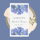 Hidrangea azul diseño floral con texto personalizable para cualquier ocasión floral. Este dibujo artístico de una romántica hortensias azules es perfecto para bodas de primavera o verano, duchas de novias, fiestas de jardín, duchas primaverales o veraniegas, o un brunch sofisticado con la futura novia... Comuníquese directamente con el diseñador con cualquier consulta de diseño. Personalizar con nombres, fechas o mensajes cortos para un toque personal que los huéspedes adorarán.