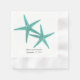 Unas toallas de papel de la pareja de estrellas de la laguna azul para una recepción de bodas. Dos estrellas del mar y texto negro en blanco, o servilletas crudas.