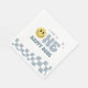 Celebra el primer cumpleaños de tu pequeña con estilo con estas servilletas fiestas azules modernas de "One Happy Dude", con una emoji de sonrisa alegre y letras modernas y audaces, perfectas para agregar un toque lúdico a tu mesa fiesta.