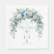 Add a touch of refined elegance to your reception with these Blue Rose & Silver Cross Baptism Napkins. The design features a breathtaking, lush overhead arch of watercolor roses in dusty blue and crisp white, intertwined with delicate eucalyptus and botanical greenery. Suspended from the center of the floral arrangement is a sophisticated silver filigree cross, accented by shimmering metallic chains and tassels that offer a modern, high-end boutique aesthetic.