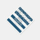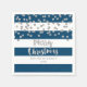 Las servilletas navideñas para la temporada navideña con estampado azul marino y blanco y confeti festivo plateado.