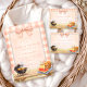A sweet and feminine Baby-Q design featuring soft blush gingham and a statement bow at the top. The watercolor grill scene, fresh lemonade, watermelon slices, and picnic basket details create a charming backyard gathering feel, while the wooden table base adds warmth and texture. The structured inner panel keeps the layout clean and elegant for event details. Perfect for a summer baby shower with a soft pink picnic aesthetic.