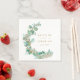 Estas elegantes servilletas de papel de boda botánicas personalizadas agregarán un toque de estilo a la configuración de su recepción. El diseño moderno presenta eucalipto pintado a mano con bayas doradas falsas. Sus nombres y fecha de boda están en una fuente Garamond dorada clásica para personalizar. ¡Mejores deseos para su boda y matrimonio! Diseñado por Susan Coffey.