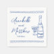 Pantalones Bodas De Champán De Mano Personalizada. Esta elegante y minimalista servilleta de cóctel boda cuenta con un encantador ilustracion a mano de una botella de champán y una copa, ideal para celebrar su ocasión especial. En suaves tonos azules y blancos, los nombres de la novia y del novio y la fecha del boda se muestran de forma elegante bajo la obra de arte en una combinación de escritura manuscrita y tipos de letra simples, creando una atmósfera elegante y accesible. El diseño está enmarcado con detalles decorativos de borde, añadiendo una sutil sofisticación a la servilleta. Personalizable completo, este diseño le permite ajustar el texto y la disposición para que se adapte a su tema boda y paleta de colores. Ideal para recepciones de bodas, también funciona de maravilla para una cena de ensayo o una ducha de novias, lo que lo convierte en un complemento versátil y elegante para su celebración.
