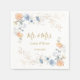 Este diseño presenta un ilustracion acuarela de melocotón pálido y flores azules de color azul con un efecto dorado en la parte superior del