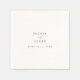 Una servilleta con el tema de una boda minimalista y elegante, diseñada en blanco y negro, con tipografía moderna, y algunas letras de guión. Personalice sus nombres, ubicación del boda y fecha. Siéntase libre de editar más, como cambiar los colores de fondo, los colores del texto, etc., haciendo clic en "personalizar este diseño", luego "editar usando la herramienta de diseño".