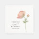 Un sencillo diseño floral acuático para bodas, fiestas de compromiso y otras celebraciones para la novia y el novio, esta servilleta de papel presenta un solo tallo de anémona de melocotón pastel. Personaliza con los nombres de la novia y del novio y la fecha de boda u otro texto deseado. Estas servilletas, que se muestran en un tamaño de servilleta de cóctel, también están disponibles para el almuerzo o la cena.