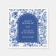 Esta hermosa y elegante servilleta de boda cuenta con un patrón de Chinoiserie azul antiguo. El texto combina fuentes manuscritas y serif para un estilo moderno y elegante. Es perfecto para una boda de jardín en primavera o verano.