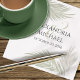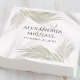 Este diseño presenta una elegante servilleta minimalista casera, sencilla y elegante, con una plantilla clásica tradicional, una elegante y moderna hojas tropicales de palmera, un sencillo novio y novia formal, una caligrafía con tipografía y caligrafía, ideal para la isla botánica de playa, decoración fiesta de la recepción de bodas, una servilleta de cócteles fiesta personalizado, una servilleta de cócteles personalizada, con caligrafía