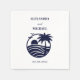 Añade un toque de elegancia a tu día especial con estas servilletas personalizadas de papel boda costero, con un diseño gráfico de moda de una palmera azul marino, el sol que se eleva sobre el océano y pájaros tranquilos, todo rodeado por un círculo naval con un elegante fondo blanco. Perfecto para un boda de palmeras o una boda en la playa, este diseño combina el encanto tropical con un estilo sofisticado. La elegante tipografía combina guiones caligráficos y fuentes limpias, haciendo de estas servilletas de papel un hermoso y práctico agregado a su celebración costera.