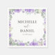 Las preciosas toallas de boda inspiradas en boho cuentan con flores moradas pintadas delicadamente a mano y eucalipto verde salado, artísticamente arreglado para enmarcar tus nombres en el centro. Este encantador diseño aporta un toque natural y elegante a su entorno, ideal para añadir un detalle personalizado a su decoración boda. Perfecto para las parejas que buscan una apariencia sutil y refinada, estas servilletas complementan con gusto una celebración rústica o de temática boho, creando una presentación coherente e inolvidable.