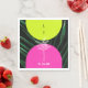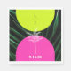 Los arcos de color amarillo neón y rosa sobre el color inspirado en el material de cartón combinan el fondo de la hoja de palma oscura con un monograma en ilustracion de palmera de arte de línea blanca y negra con fecha en blanco.
