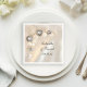 Personalizar de la bonito Perla Blanca Faux y Botones de Diamante Bodas Napkins con los nombres personales de la recién casada novia y novio y su fecha de ceremonia matrimonial. Estas elegantes servilletas desechables personalizados cuentan con una fotografía de botones de perla blanca y diamante de aspecto vintage con fondo de satén blanco.